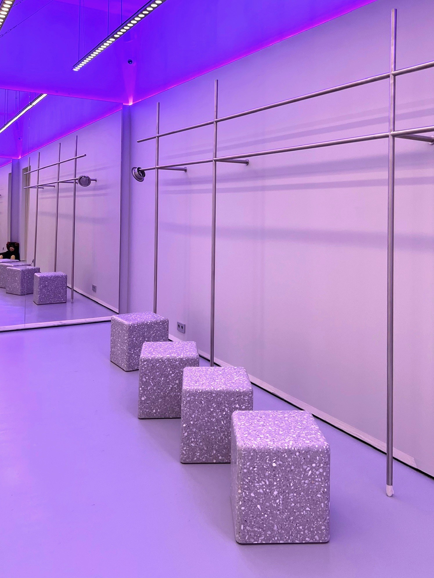 Серый бетон терраццо куб с логотипом, магазин IRNBY, Санкт-Петербург, Литейный проспект.