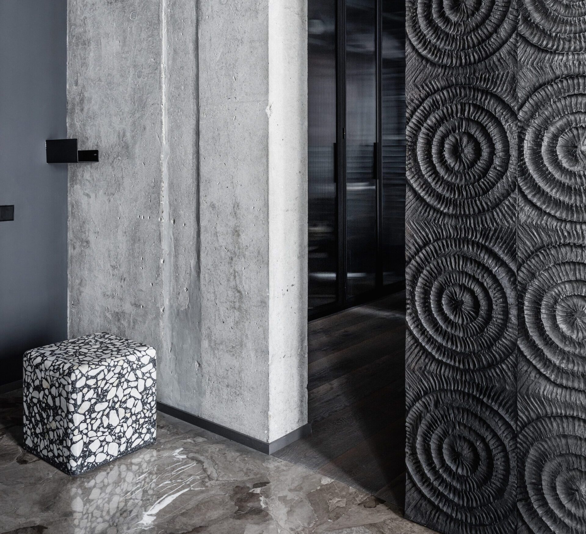 Столы CEQURE из серого терраццо в петербурской квартире.